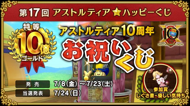 7月8日から第17回アストルティア★ハッピーくじ「アストルティア10周年お祝いくじ」が発売されます。