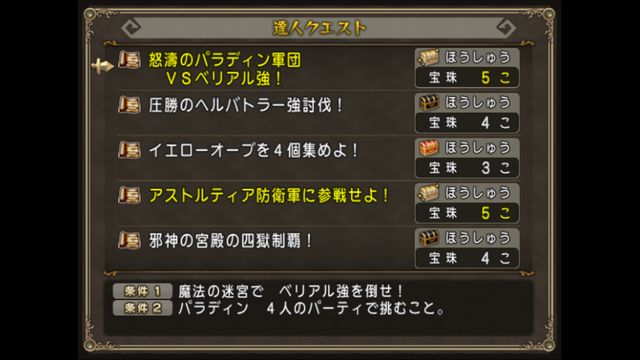 今回、宝珠5個のものは、怒涛のパラディン軍団VSベリアル強!とアストルティア防衛軍に参戦せよ!の2つあります。