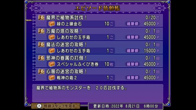 魔界で植物系討伐!と万魔の塔の攻略!がありますけど、たしか万魔の塔の三の災壇にしか植物系(きりかぶこぞう)は出てこなかったような。