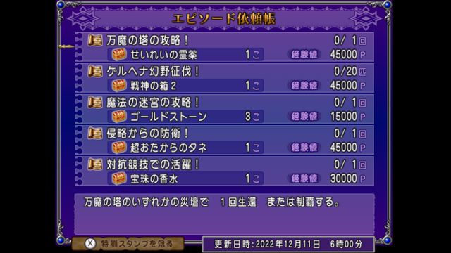 アストルティア防衛軍に参戦せよ!は大魔王の代筆家のほうと一緒にできますし、邪神の宮殿の三獄制覇!のほうは、昨日更新された邪神の宮殿がこれからの人にちょうどいいですね。
