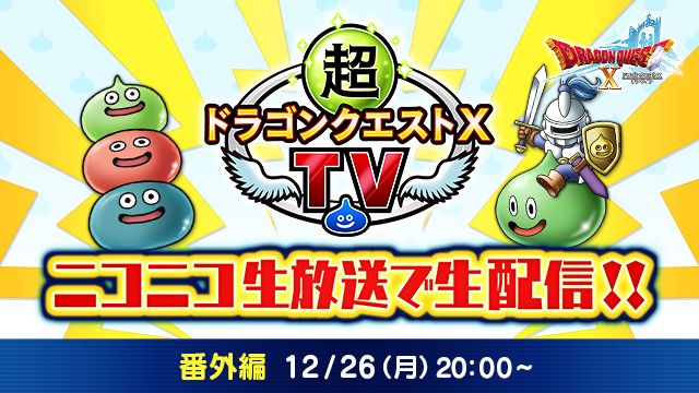 明日12月26日の20:00からは超ドラゴンクエストXTV 冒険者の超忘年会スペシャル2022があります!