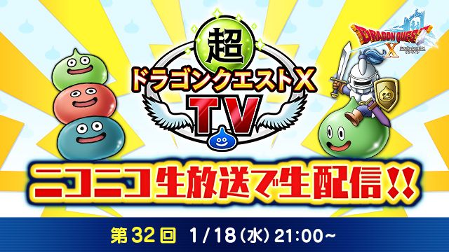 1月18日(水)21:00からは、超ドラゴンクエストXTV #32!