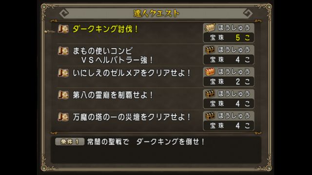 今回宝珠5個のものは、ダークキング討伐!のひとつだけです。