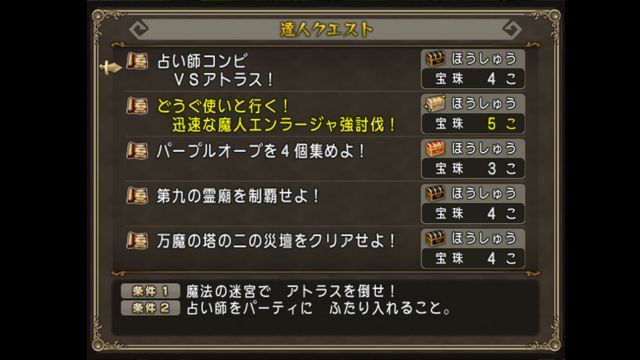 今回宝珠5個のものは、どうぐ使いと行く!迅速な魔人エンラージャ強討伐!のひとつになります。