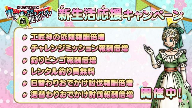 今日からチャレンジミッション・釣りビンゴ(&釣り具無料)・日替わりおでかけ討伐・週替わりおでかけ討伐の報酬倍増キャンペーンが始まってます。