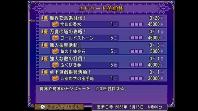 魔界で鳥系討伐!と万魔の塔の攻略!がありますけど、一・二・三の災壇に鳥系が出てきますね。