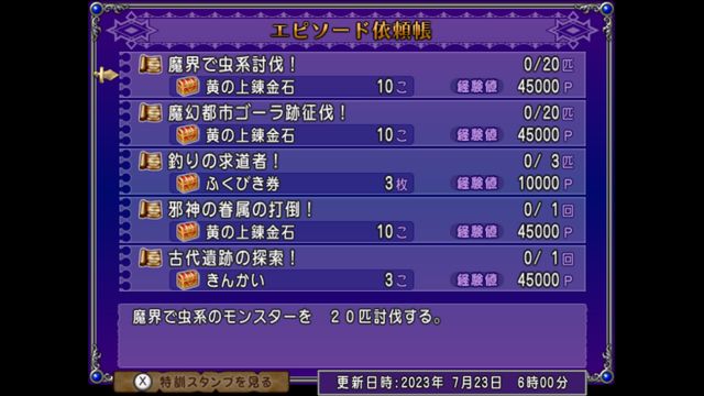 魔幻都市ゴーラ跡には虫系のメーダ・強とグリーンシザー・強がいますので、魔界で虫系討伐!と魔幻都市ゴーラ跡征伐!が両方できます。