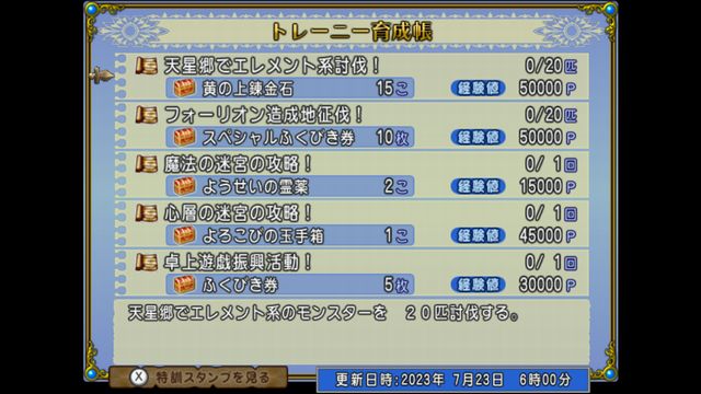 これで錬金石が15個もらえるので、フィッシングコンテスト、依頼帳、育成帳と合わせて今週は錬金石が105個も手に入っちゃう!