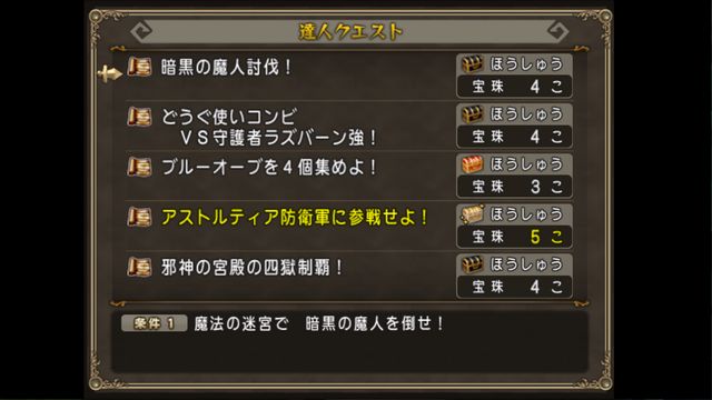 今回宝珠5個のものはアストルティア防衛軍に参戦せよ!のひとつです。