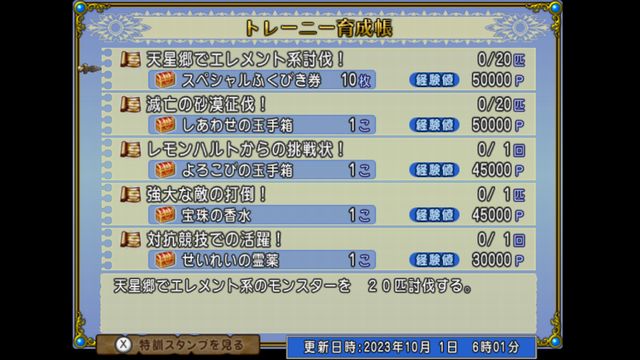 滅亡の砂漠征伐!がありますけど、ここにエレメント系は出てこないので天星郷でエレメント系討伐!と一緒にはできません。