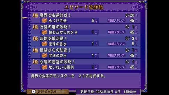 魔界で虫系討伐!と万魔の塔の攻略!がありますけど三の災壇と四の災壇に虫系が出ますので一緒にできますね。