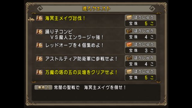 そのうち万魔の塔の五の災壇をクリアせよ!なら依頼帳と一緒にできますね。