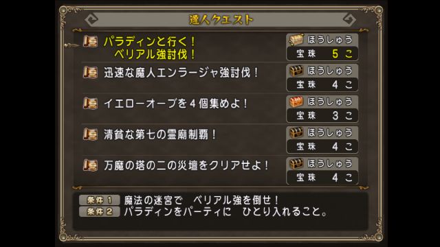 今週宝珠5個のものはパラディンと行く!ベリアル強討伐!のひとつだけです。