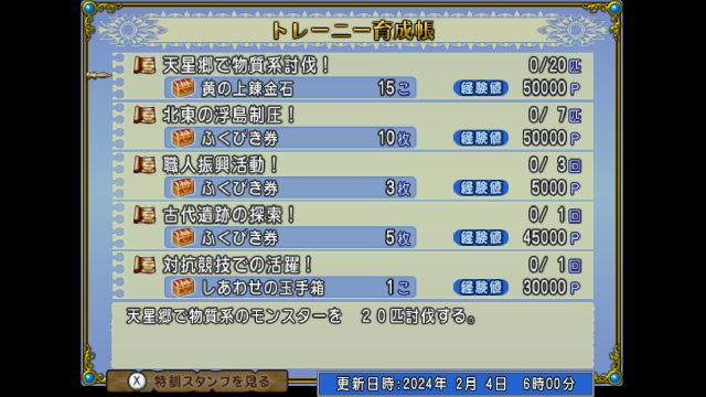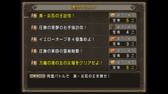 真・災厄の王討伐!と万魔の塔の五の災壇をクリアせよ!ですけどどれも依頼帳や育成帳とはかぶらない内容なのでお好みで。