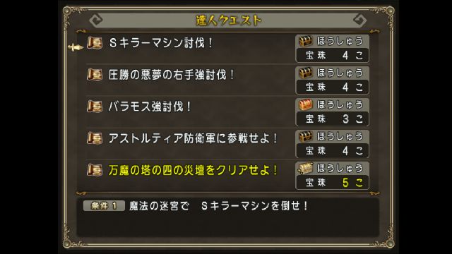 今回宝珠5個のものは万魔の塔の四の災壇をクリアせよ!のひとつです。