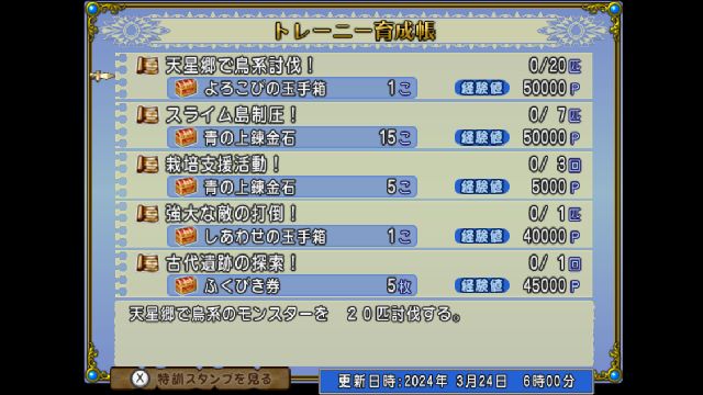 スライム島いるのはスライムばかりなので天星郷で鳥系討伐!とスライム島制圧!は同時にはできません。
