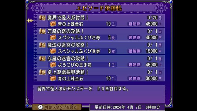 宝珠4個ですけど、万魔の塔の二の災壇をクリアせよ!なら依頼帳と一緒にできますね。