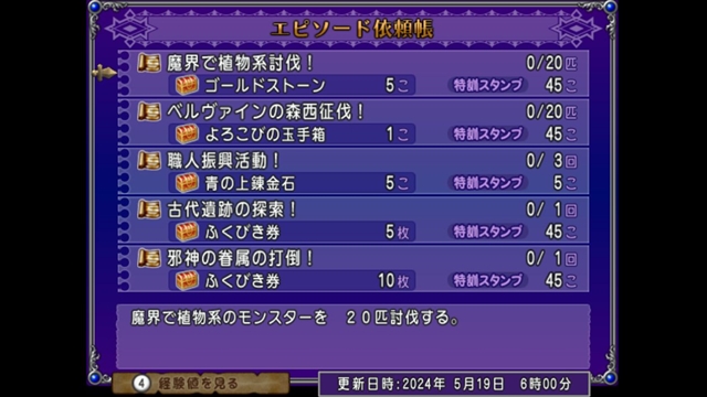 魔界で植物系討伐!とベルヴァインの森西征伐!がありますけどおばけキノコとじんめんじゅ・強が出るので一緒にできますね。
