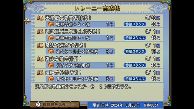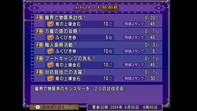 先週分は育成帳のほうに上錬金石報酬のものが3つありましたけど今週は依頼帳で合計30個上錬金石がもらえますね。