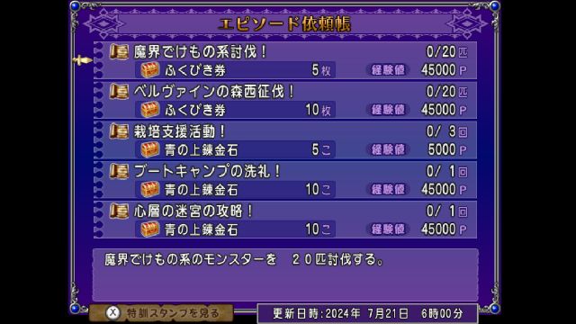 栽培支援活動!、ブートキャンプの洗礼!、心層の迷宮攻略!で合計25錬金石がもらえます。