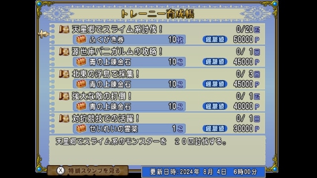 育成帳の中に青の上錬金石×10が3つあって計30個もらえるのはうれしいですね。