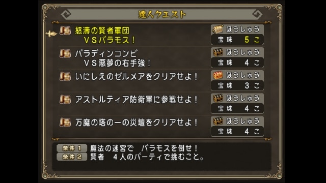 宝珠4つになりますけどアストルティア防衛軍に参戦せよ!や万魔の塔の一の災壇をクリアせよ!なら依頼帳と一緒にできますね。