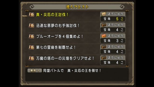 宝珠4個になっちゃいますけど万魔の塔の一の災壇をクリアせよ!なら依頼帳のものといっしょにできますね。