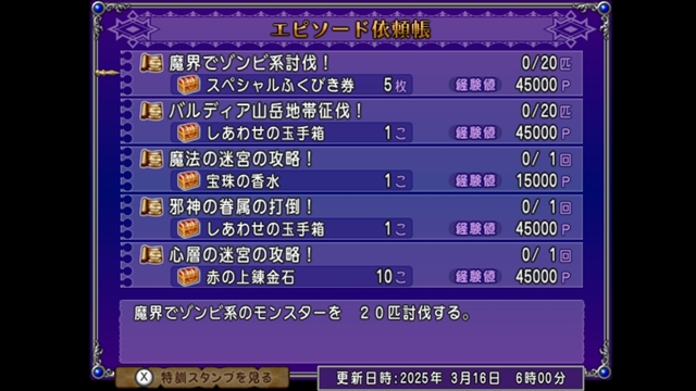 「伝説の宿敵たち ミルドラース」に挑戦とかプチ情報コーナーとかがありまーす。