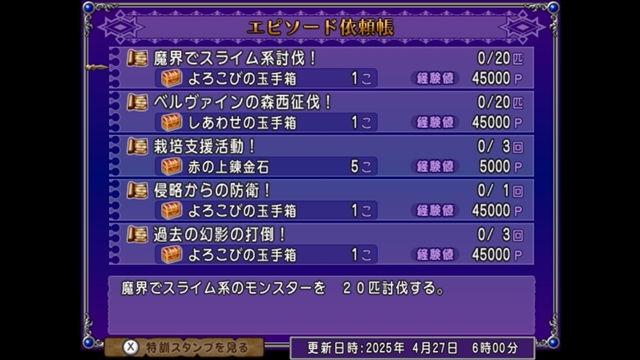 魔界でスライム系討伐!ベルヴァインの森西征伐!がありますけどが西エリアにはスライム系がいませんので一緒にはできません。