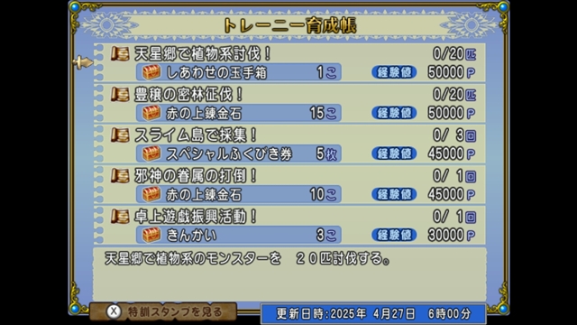 豊穣の密林には黒ごまキッズとオベルジーヌがいるので天星郷で植物系討伐!豊穣の密林征伐!は同時にできますね。
