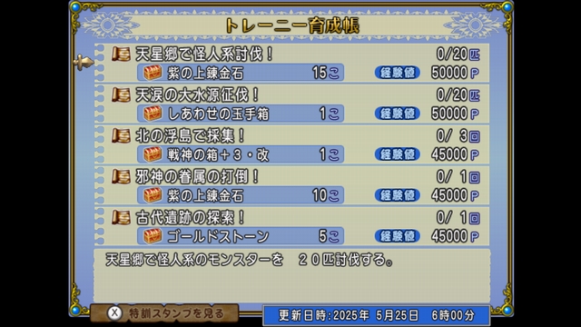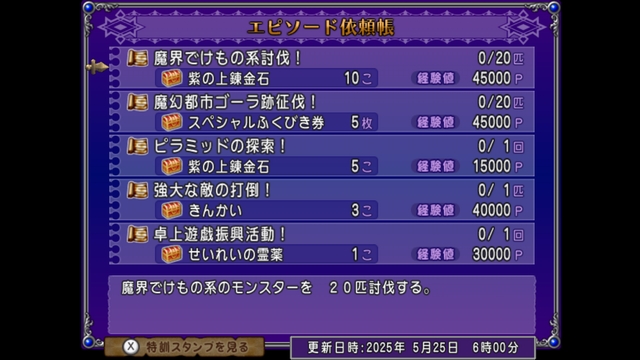 今週は依頼帳と育成帳で両方に紫の上錬金石があります。