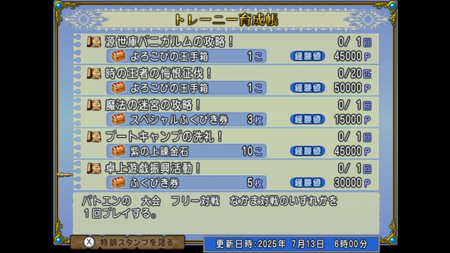 紫の上錬金石×10がもらえるブートキャンプの洗礼!では今週はガーディアンと占い師が指定職になっています。