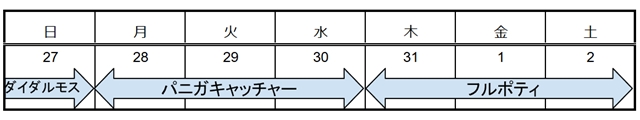 今週のパニガルムスケジュールはこんな感じです。