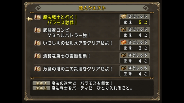 今週宝珠5個のものは魔法戦士と行く!バラモス討伐!だけになります。