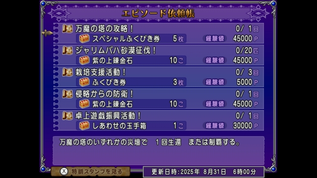 ジャリムバハ砂漠征伐!と侵略からの防衛!それぞれ10個ずつ、合わせて20個の紫の上錬金石が手に入ります。