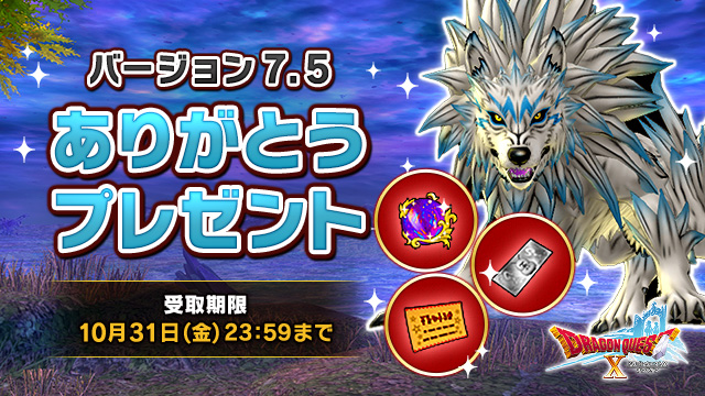 バージョン7.5ありがとうプレゼントの受け取りが10月31日(金)23:59までになっています。