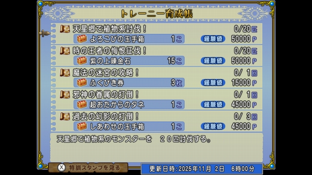 釣りコンテストとかで錬金石80個分 今週の更新11/2