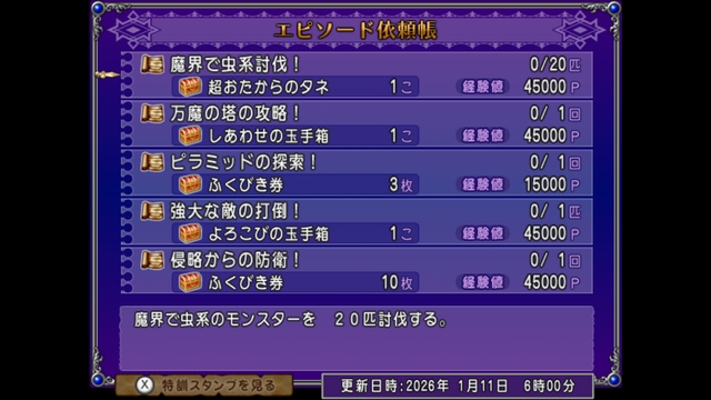 魔界で虫系討伐!万魔の塔の攻略!がありますが、三の災壇(テンツク)四の災壇(メーダ)と虫系がいますので同時達成可能です。