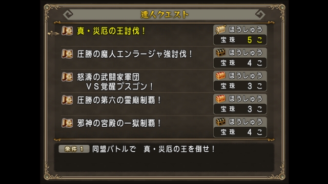 今週宝珠5個のものは、真・災厄の王討伐!ひとつだけです。
