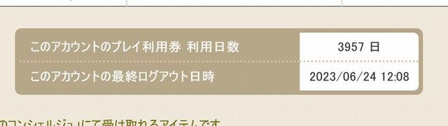 それはそうと、もうすぐプレイ継続3960日特典がもらえるんですけど