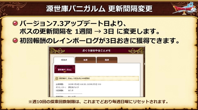 先週のDQXTVでも言ってましたけど7.3になるタイミングで切り替わったりするものがありますので3点ほどピックアップです。