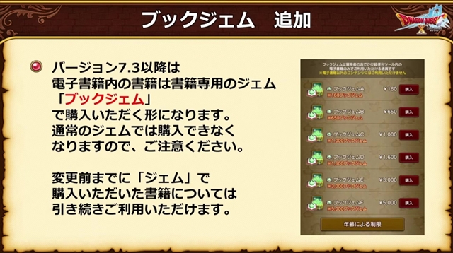 ブックジェムが導入されることにより通常ジェムでの電子書籍購入が不可になります。