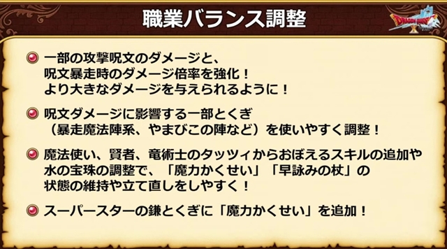 仲間モンスターの呪文もパワーアップですけど調整自体はプレイヤーへの調整とは異なるそうです。