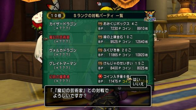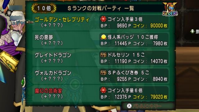 通常コイン 2000枚 ×10倍バトル ×コイン入手3倍 ×フィーバーで1.5倍