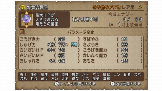 大地の大竜玉が完成していた場合、第一伝承のHP+5と合成効果にあるHP+5(第二伝承)の2つが伝承されます。