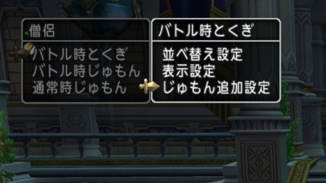 じゅもん追加設定はその名の通り、バトルの時にとくぎコマンドのところに呪文を表示させる設定です。