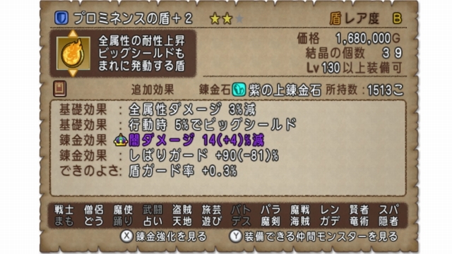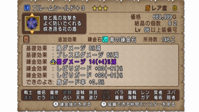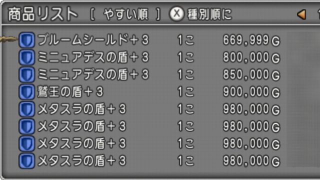 ベースになる盾にこだわらなければ、18%のものでも100万Gを超えないお手頃な価格です。