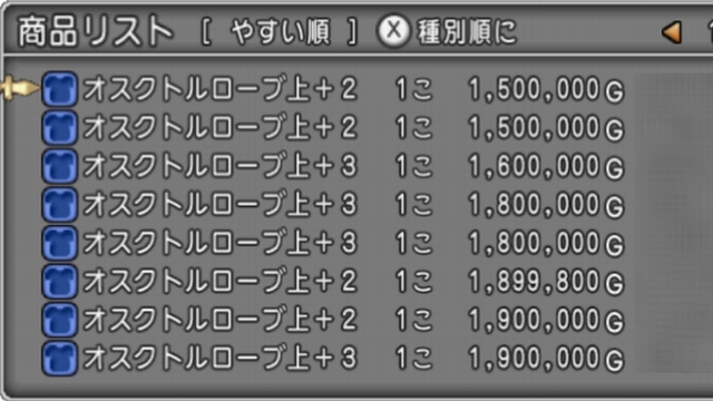 オスクトルセットと同じく、「雷と闇のダメージ20%減」をもつアビスセーラー上ならオスクトルローブ上の半分くらいの値段で手に入るかもしれません。