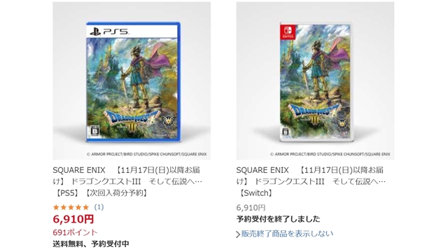 特にSwitch版のほうの売り切れ率高し。