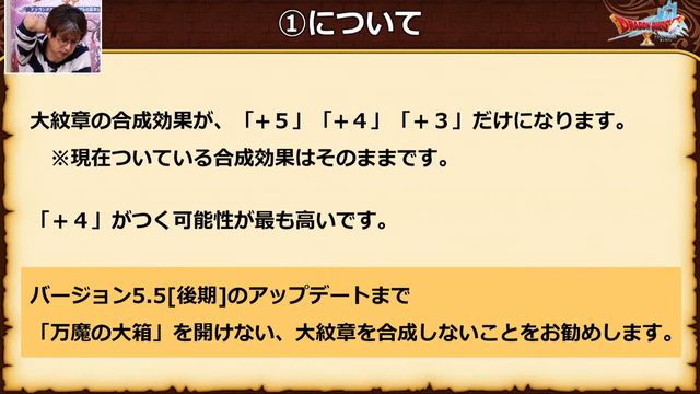 この前のDQXTVで万魔の塔っていうか、大紋章の緩和修正が告知されましたね。